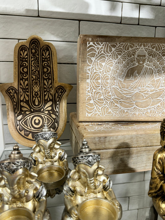Metāla bezgalības simbola skulptūra ar mango koka pamatni, 14,5x24cm
