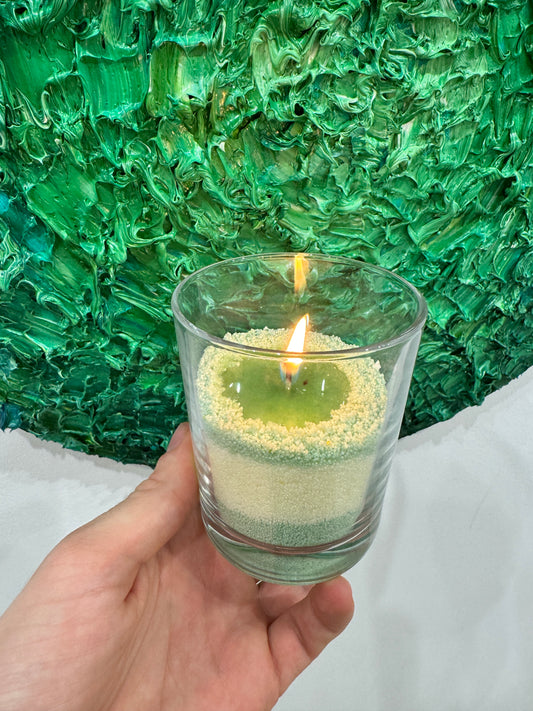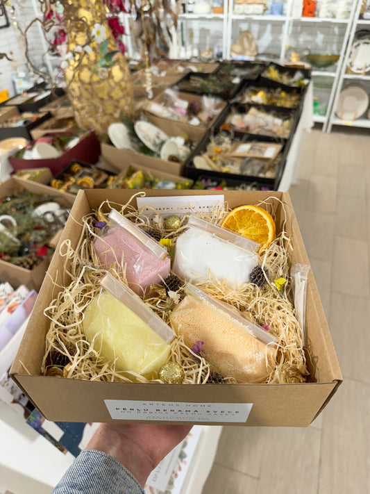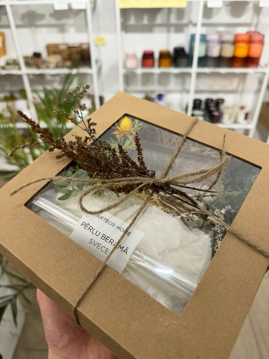 Vidējais pērļu sveču dāvanu komplekts ar trauciņu