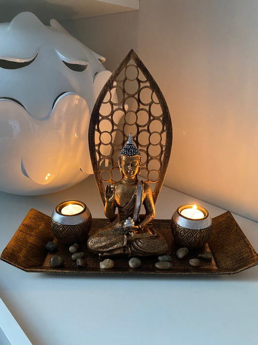 zemāka cenaBudas figūras komplekts ar svečturiem, L35cm