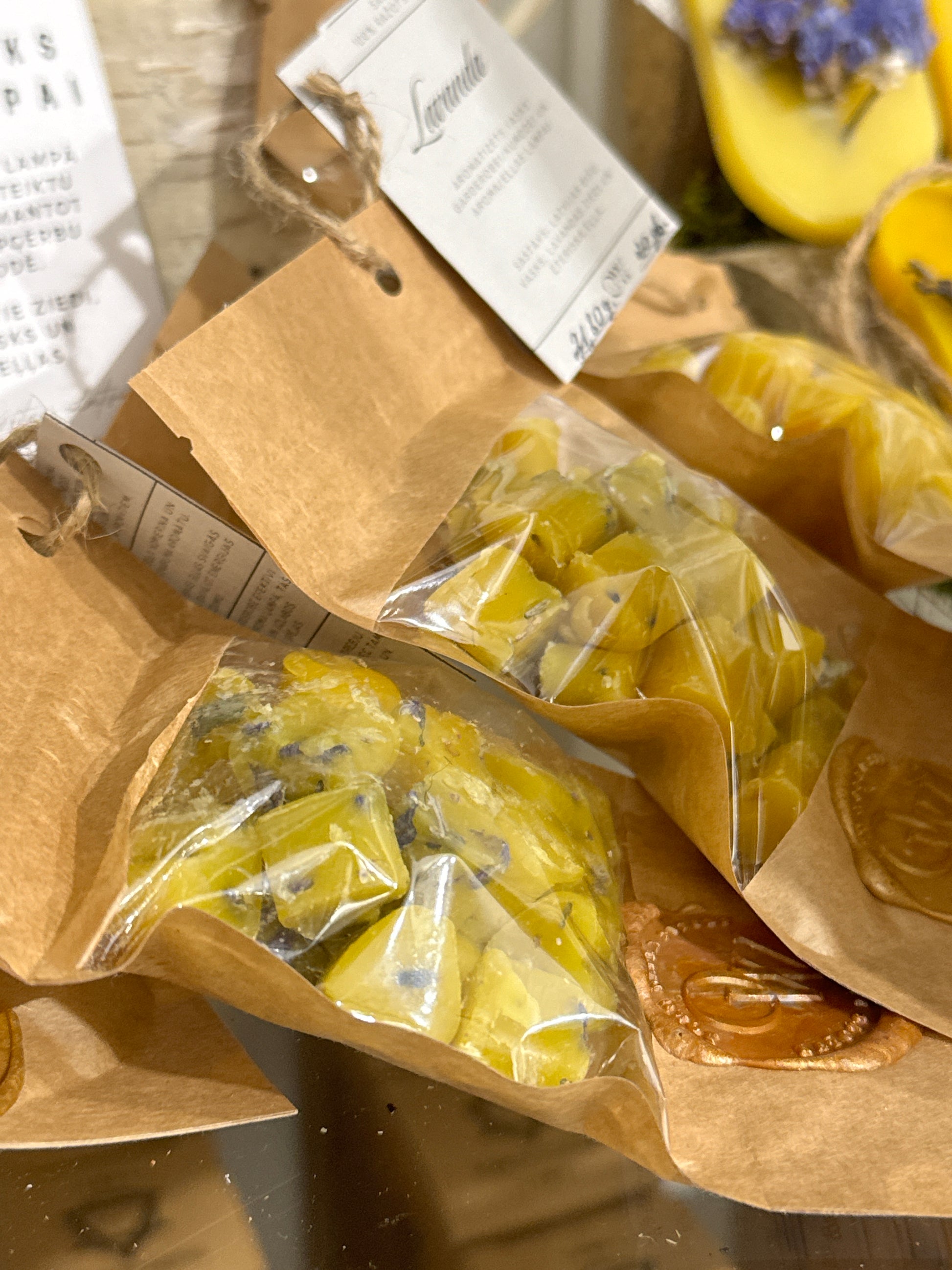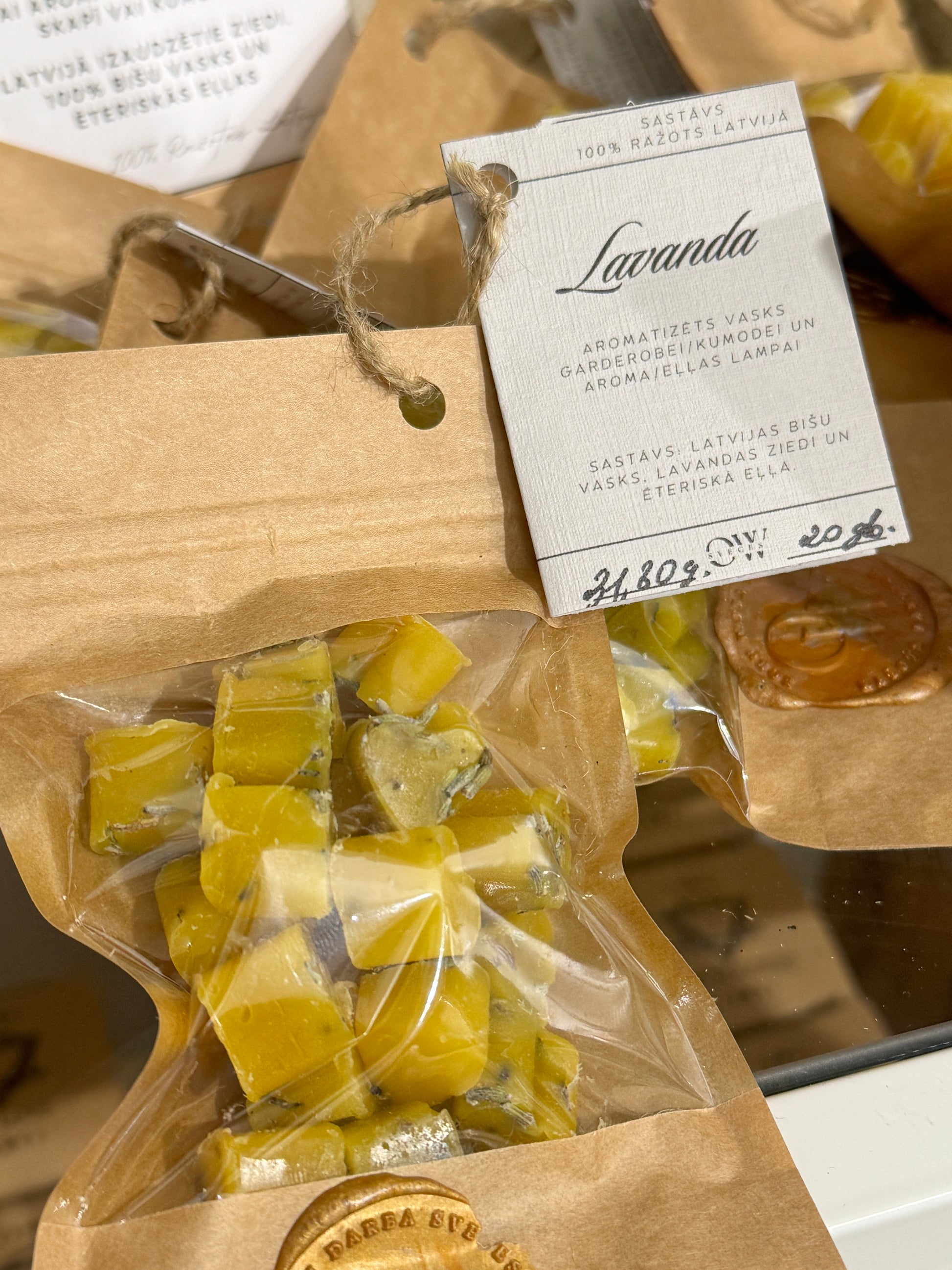 - Bišu vaska sirsniņas aromlampām ir izgatavotas no 100% bišu vaska, tiem piemīt dabiski saldganīgs medus, propolisa un lavandas aromāts no Latvijā ražotām dabīgām ēteriskām eļļām ar Lavandas ziediņiem, kas piesātina aromāta buķeti.