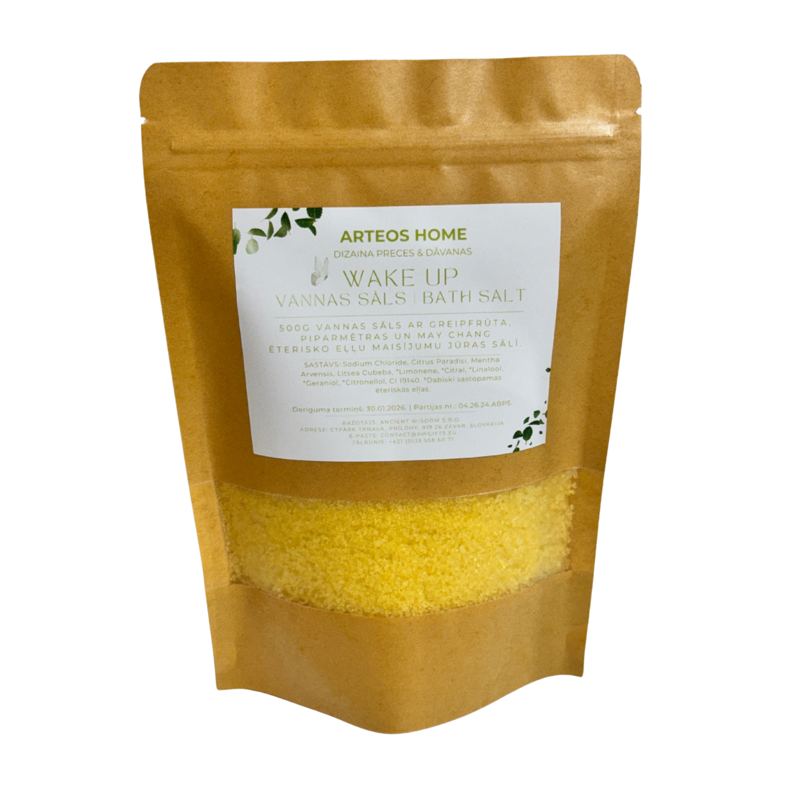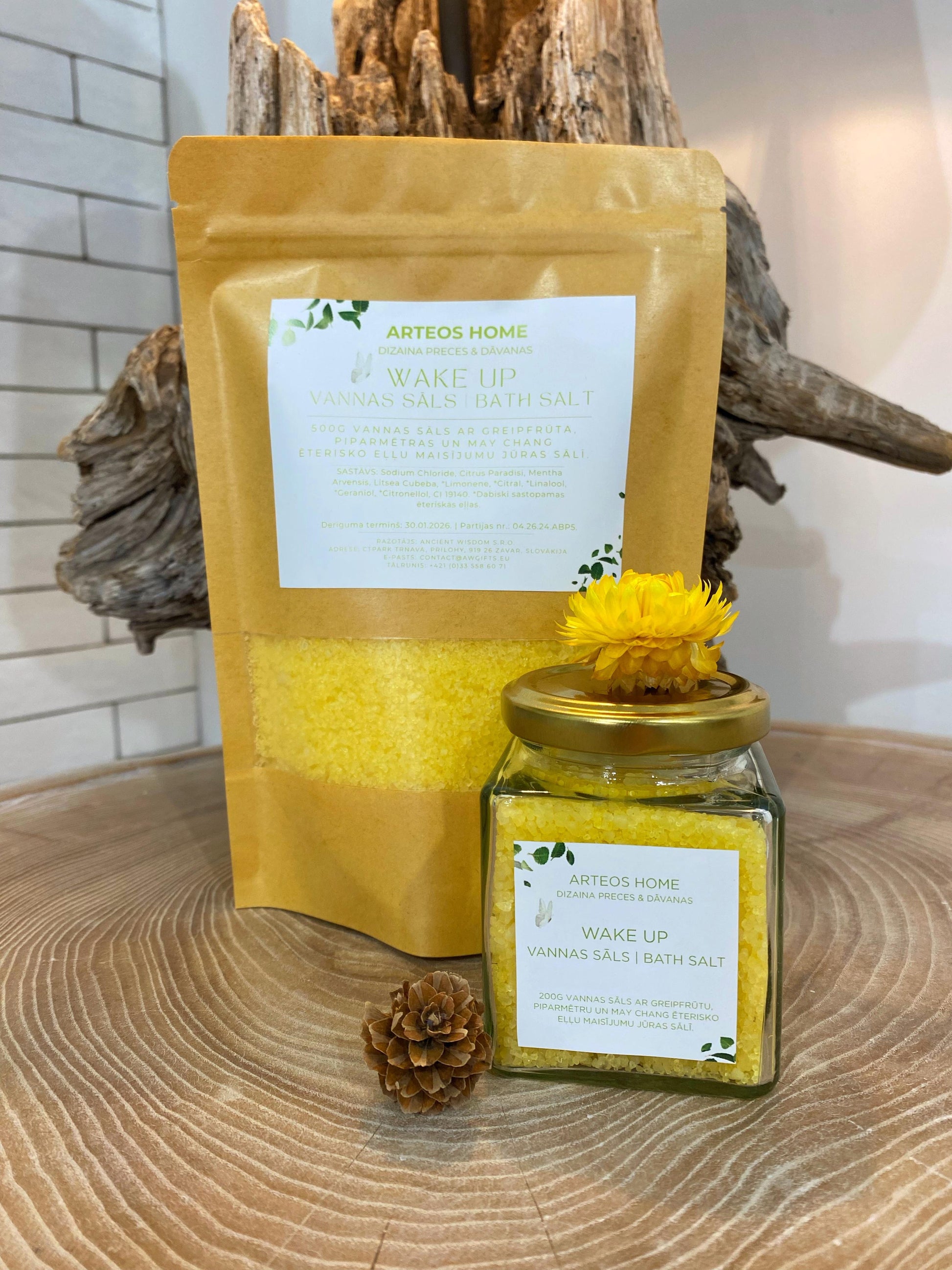- Sāc dienu enerģiski ar Wake Up – atsvaidzinošu vannas sāli, kas apvieno jūras sāli ar citrusīgu greipfrūtu, piparmētru un May Chang (litsejas) ēterisko eļļu maisījumu. Šī dinamiskā aromterapijas kombinācija uzmundrina prātu, veicina modrību un atstāj ķermeni patīkami tonizētu. Ideāli piemērots rītiem vai jebkurā brīdī, kad nepieciešams dabisks enerģijas lādiņš.