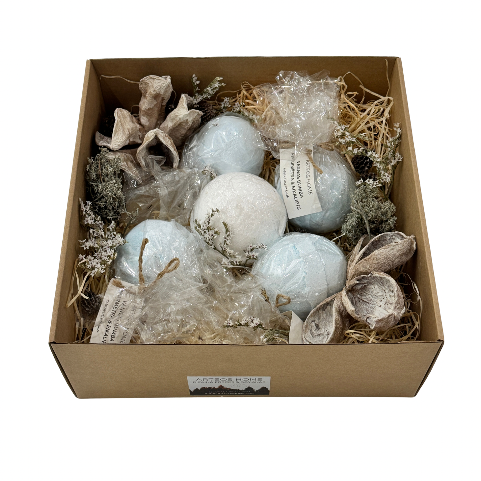 - Komplekts dekorēts dāvanu kastē ar sausajiem ziediem