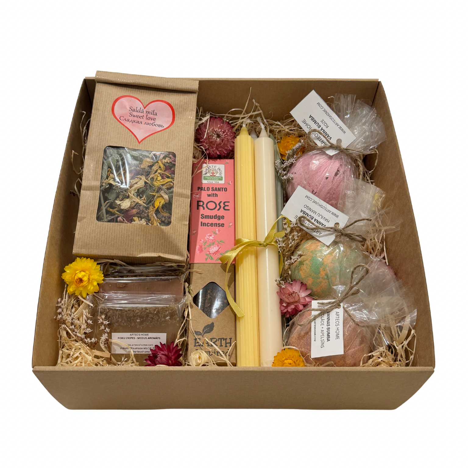 - 3 vannas bumbas: šokolāde + apelsīns, havaju mango, roze