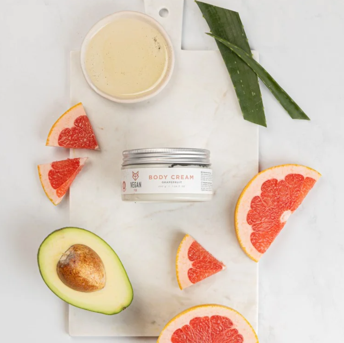 Lietošana – Greipfrūtu ķermeņa krēms jāuzklāj uz tīras ķermeņa ādas plānā kārtiņā un rūpīgi jāiemasē, var lietot katru dienu, ieteicams uzreiz pēc dušas.