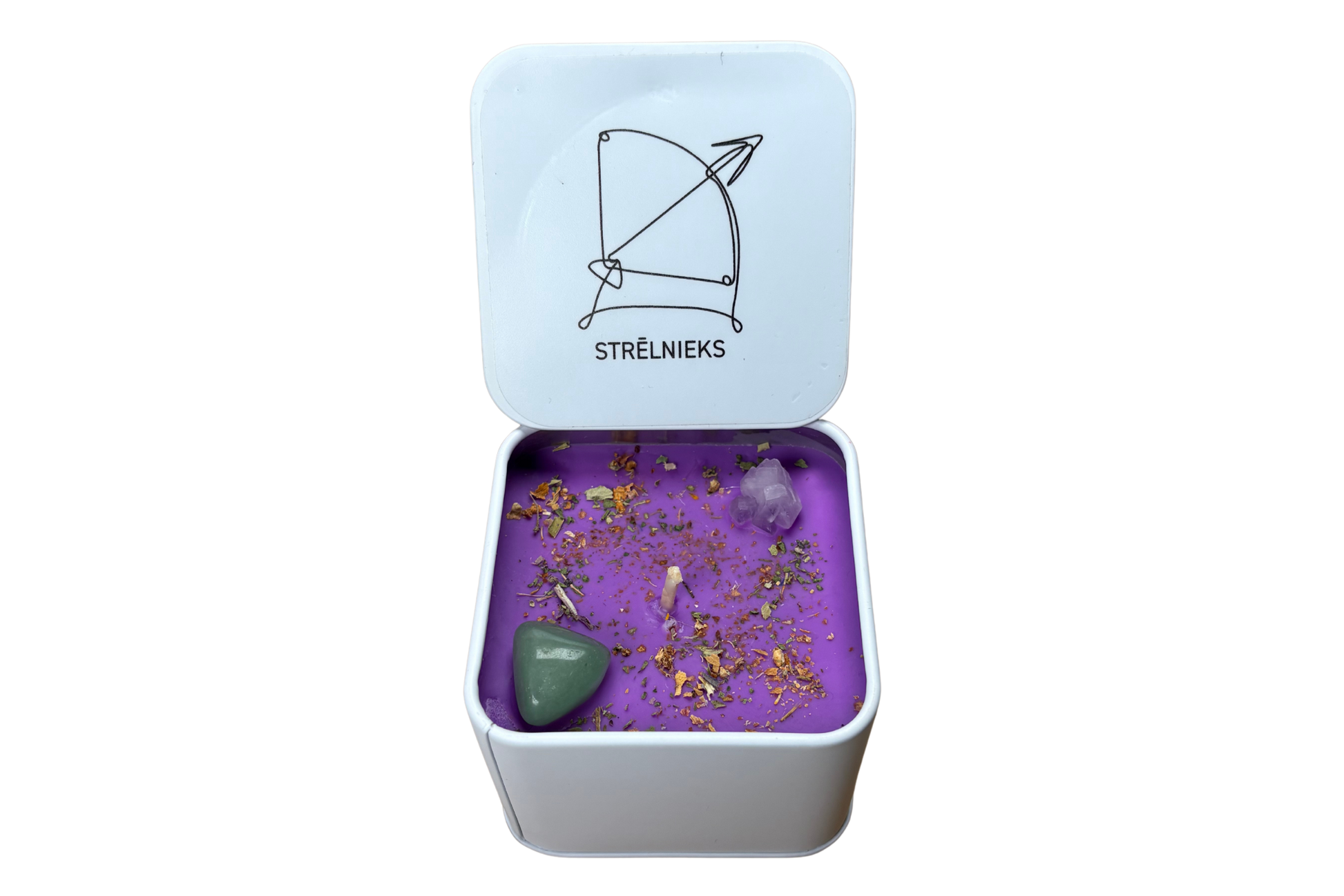 Košā violetā krāsa simbolizē Strēlnieka garīgumu, gudrību un neizsīkstošo vēlmi izzināt pasauli. Šī svece ir kā ceļavējš jauniem atklājumiem.