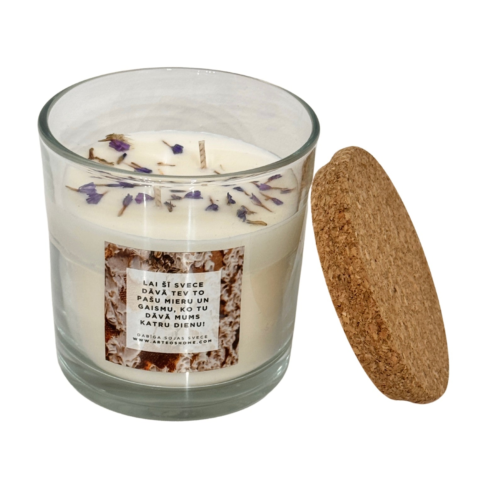 - Sojas vaska dabīgā svece ar stāstu: Lai šī svece dāvā tev to pašu mieru un gaismu, ko tu dāvā mums katru dienu!