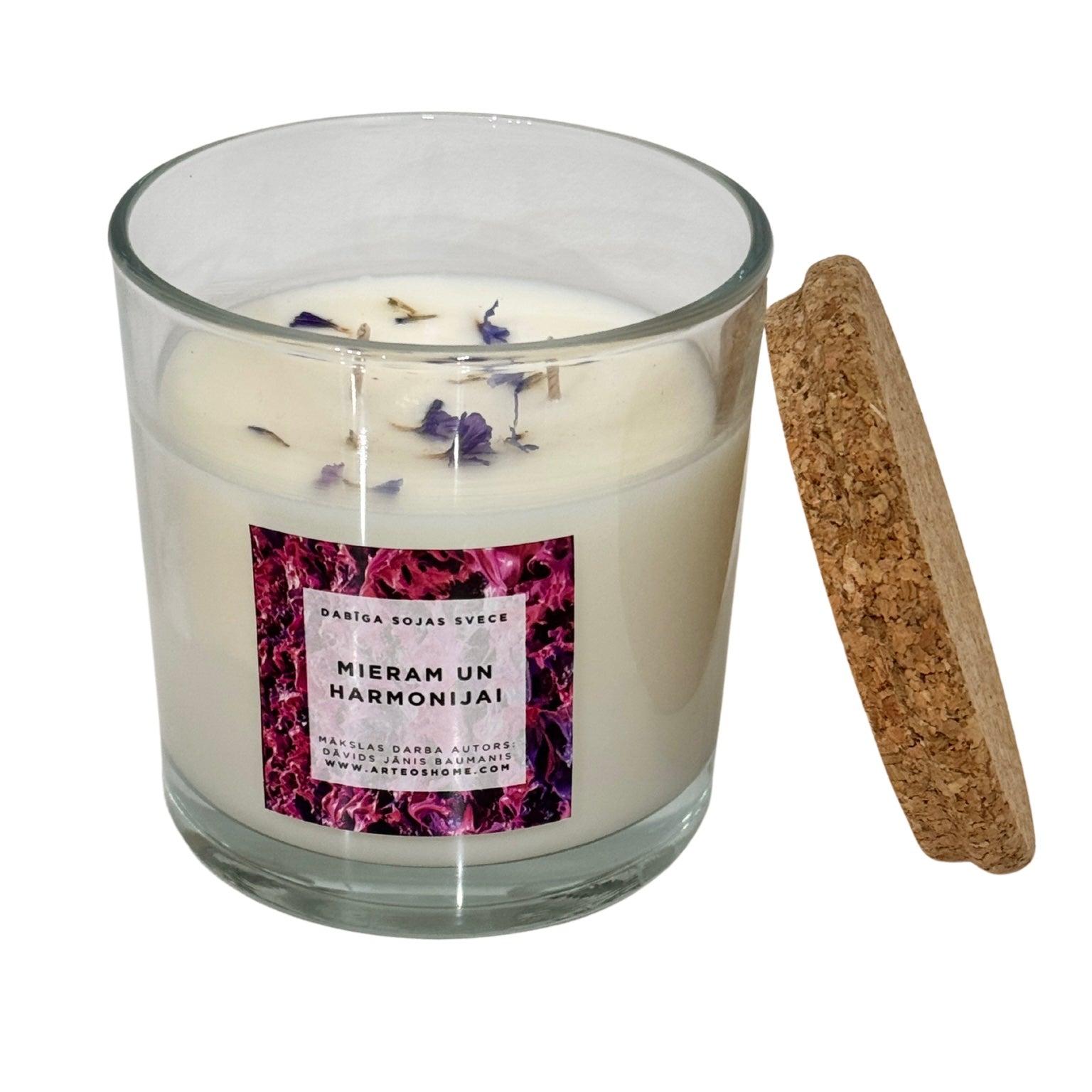 - Sojas vaska dabīgā svece ar stāstu: Mieram un harmonijai