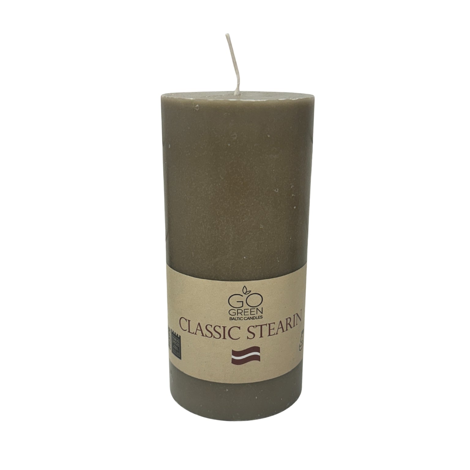 Lieta stearīna cilindriska svece - olīvu zaļa, A15cm