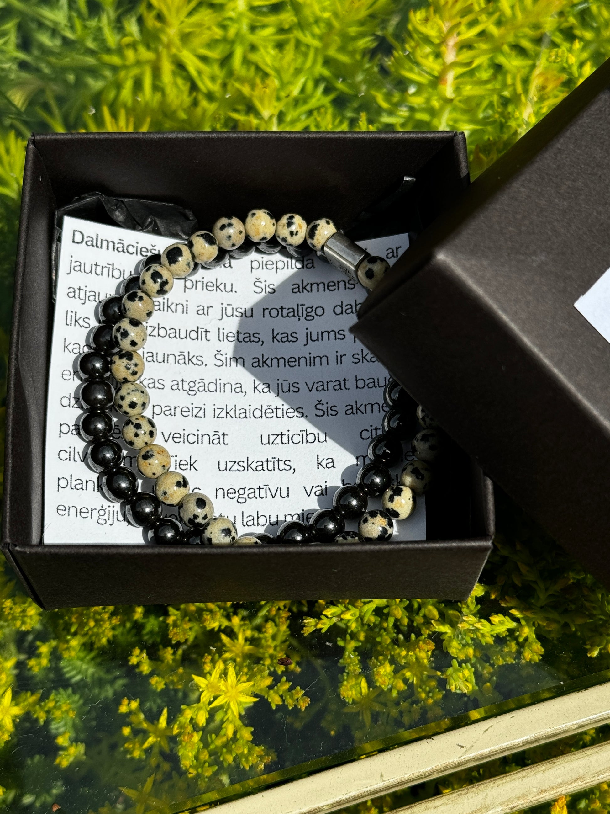 Magnētisko dārgakmeņu rokassprādze - Dalmācijas jašma