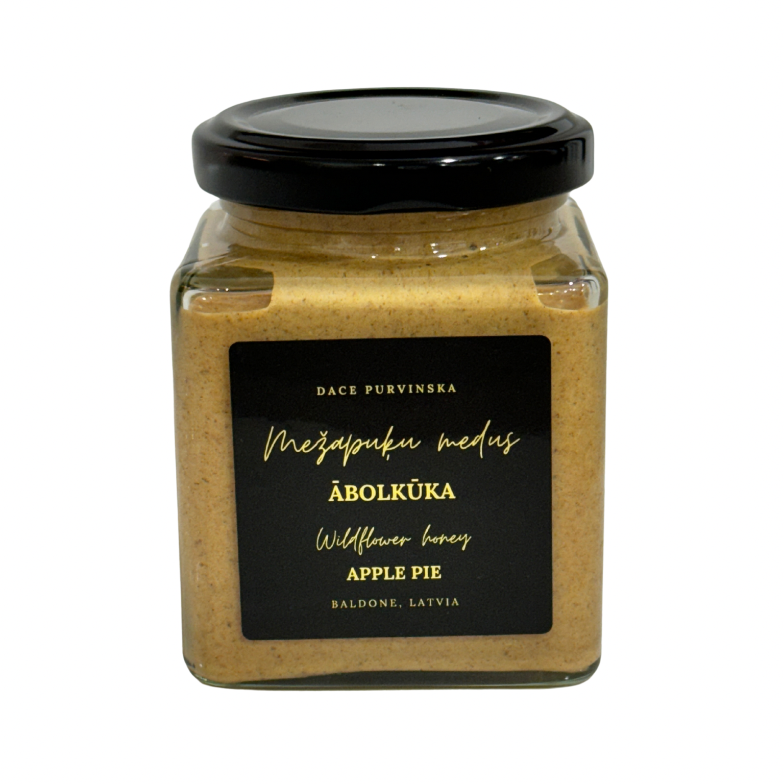 - Sastāvs: putots medus 90%, žāvēti malti āboli 10%, kanēlis, krustnagliņas.