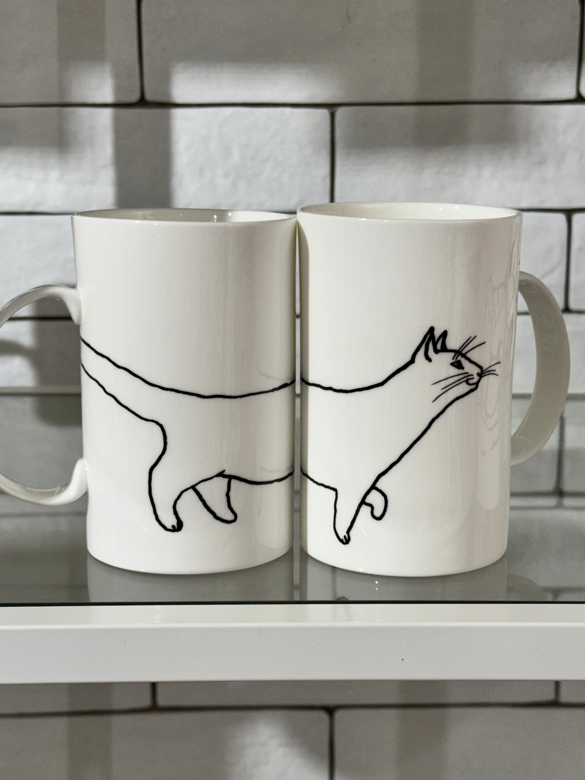 Piebalgas porcelāna krūze - Kaķis ar putnu, 400ml