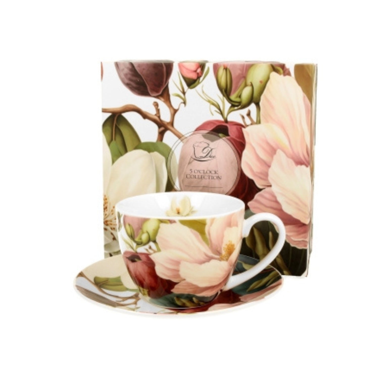 - Līnijas rotājumu iedvesmojusi daba – skaistas rozā, violetas un baltas magnolijas, kas pazīstamas ar savām smalkajām ziedlapiņām un intensīvo smaržu. Viens skats uz rakstu aizved mūs uz majestātiskiem dārziem, kas pilni ar šiem brīnišķīgajiem ziediem. Magnolijas motīvs tika veidots, pievēršot lielu uzmanību detaļām, ko var redzēt ziedu ziedlapu precīzajās līnijās un elegantajās formās. Tā delikatese un skaistums padara to par lielisku izvēli cilvēkiem, kuri novērtē augstu kvalitāti un smalku estētiku. Komplekts, kas iepakots dekoratīvā kastē, kas dekorēta ar tādu pašu motīvu, ir lieliska ideja oriģinālai dāvanai.