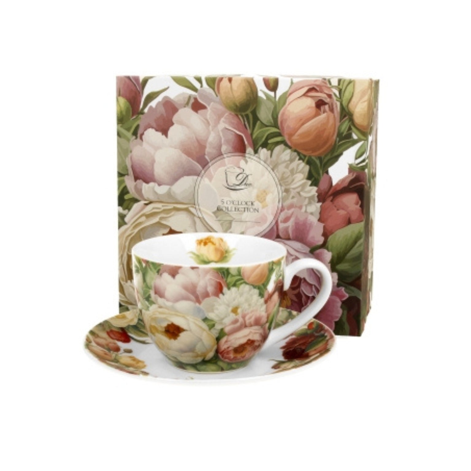 - Līnija, kas dekorēta ar bagātīgu apburošu peoniju buķeti rozā, lavandas un baltā pasteļtoņos. Peoniju ziedi, kas simbolizē mīlestību un pārpilnību, piešķir krūzītei smalku šarmu, un to smalkās krāsas ienes interjerā svaigumu un prieku.Tā delikatese un skaistums padara to par lielisku izvēli cilvēkiem, kuri novērtē augstu kvalitāti un smalku estētiku. Komplekts, kas iepakots dekoratīvā kastē, kas dekorēta ar tādu pašu motīvu, ir lieliska ideja oriģinālai dāvanai.