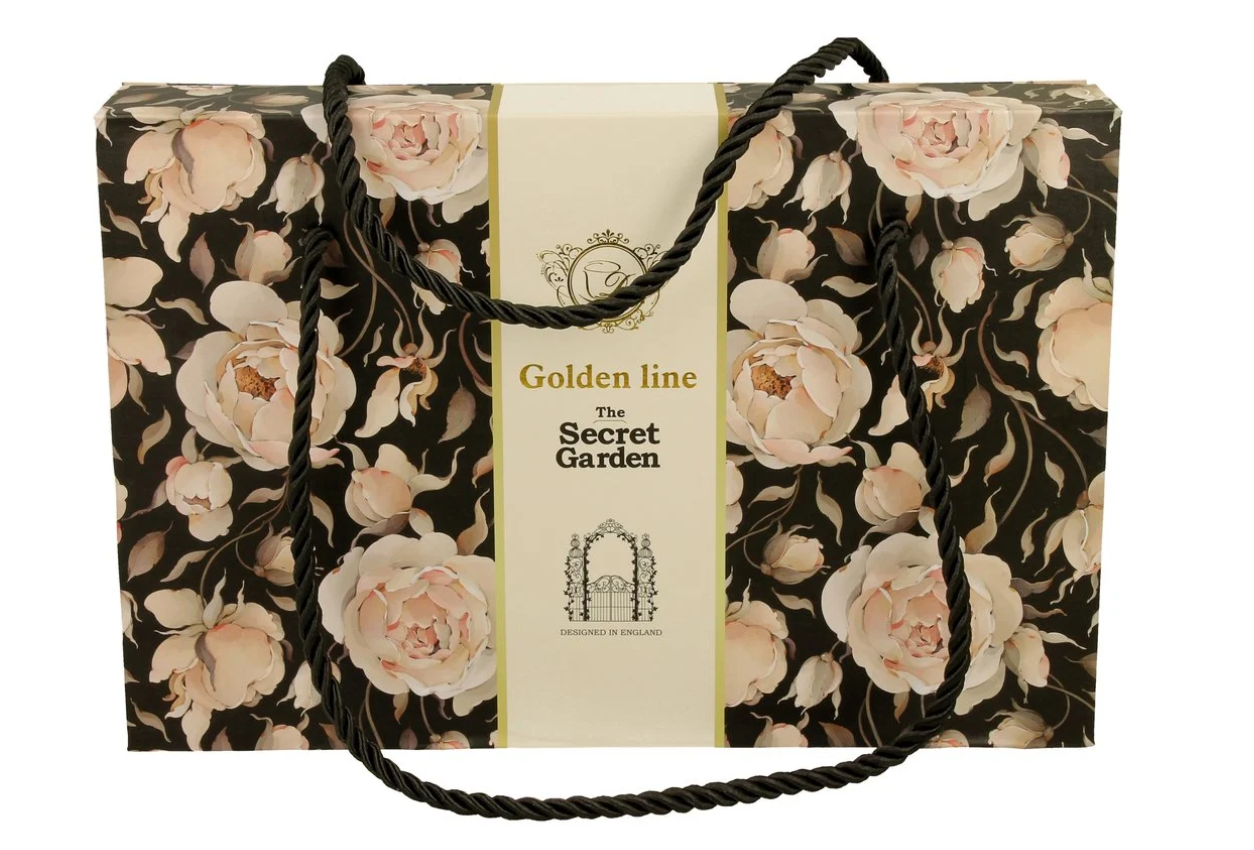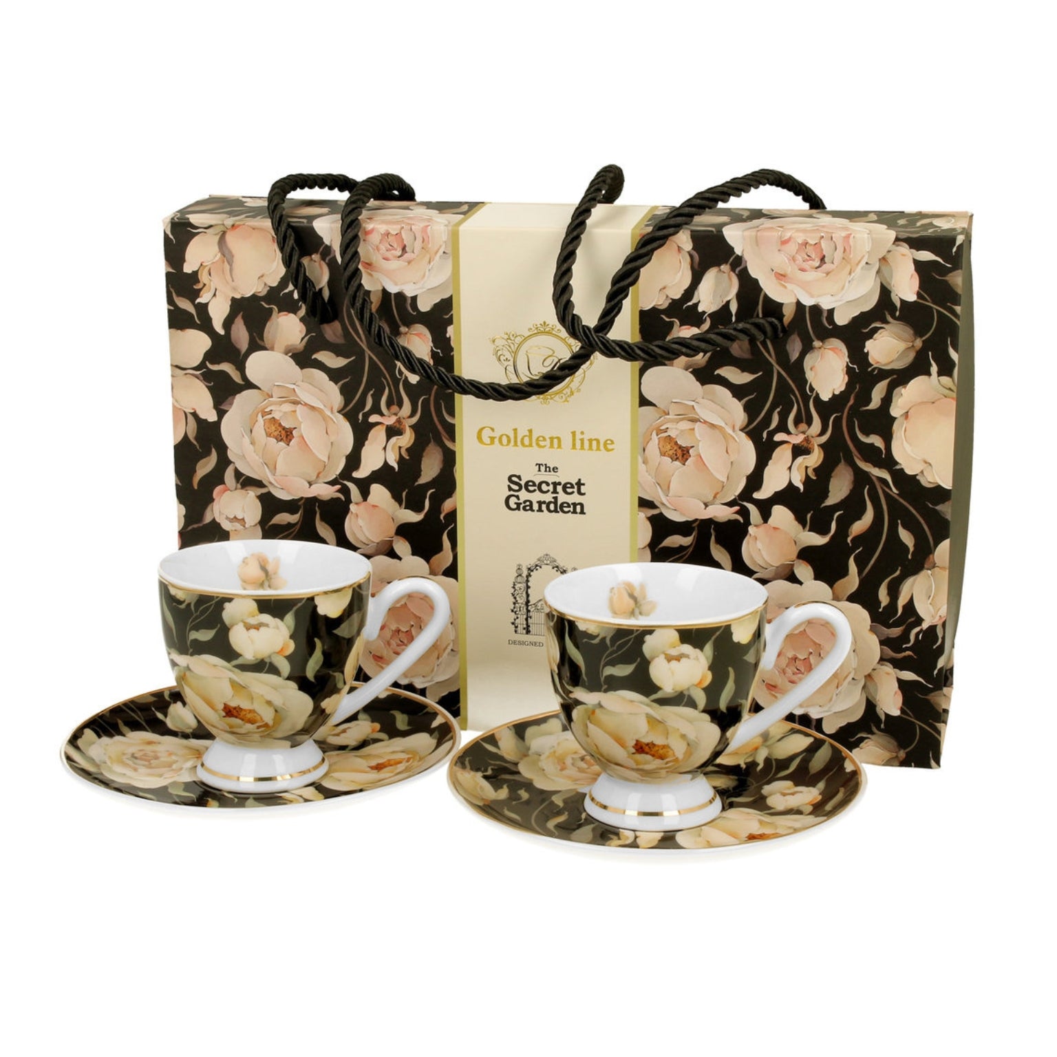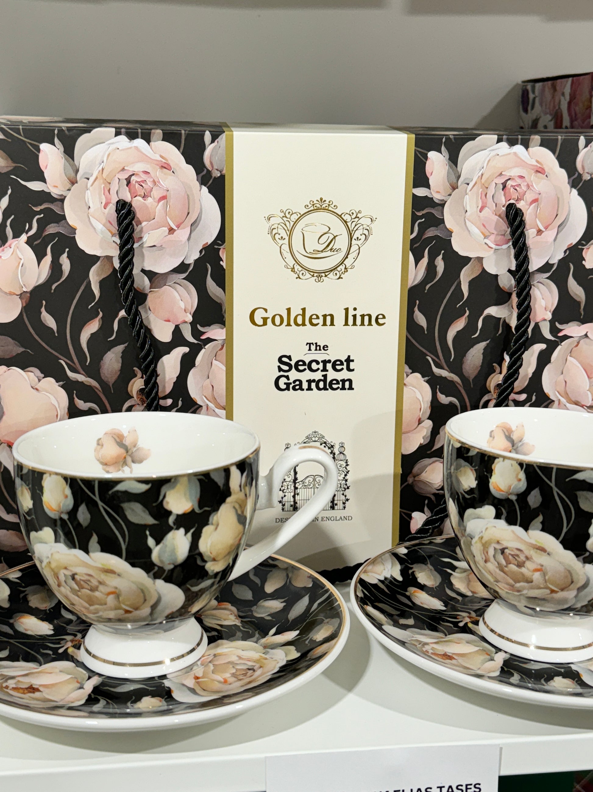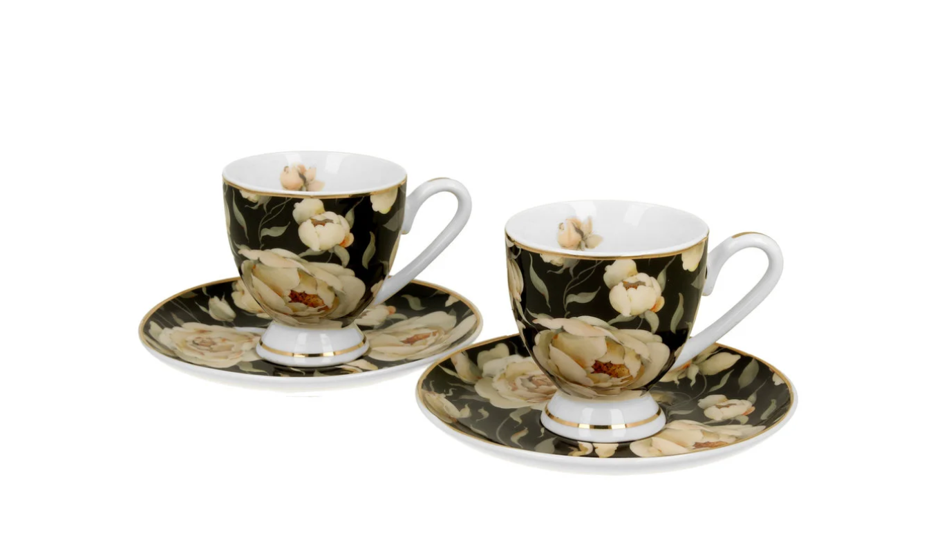 - Kolekcijai ir smalks, taču izsmalcināts dizains ar angļu rožu dzinumu motīvu, kas kontrastē gaišās pasteļtoņos uz dziļa, melna fona. Šī smalkā krāsu izvēle piešķir komplektam neparastu eleganci un greznu sajūtu. Prezentētais krūzīšu un apakštasīšu komplekts, kas ievietots pievilcīgā, ar identisku rakstu dekorētā iepakojumā, ir lieliska ideja neparastai dzimšanas dienas dāvanai gan sievietēm, gan vīriešiem.