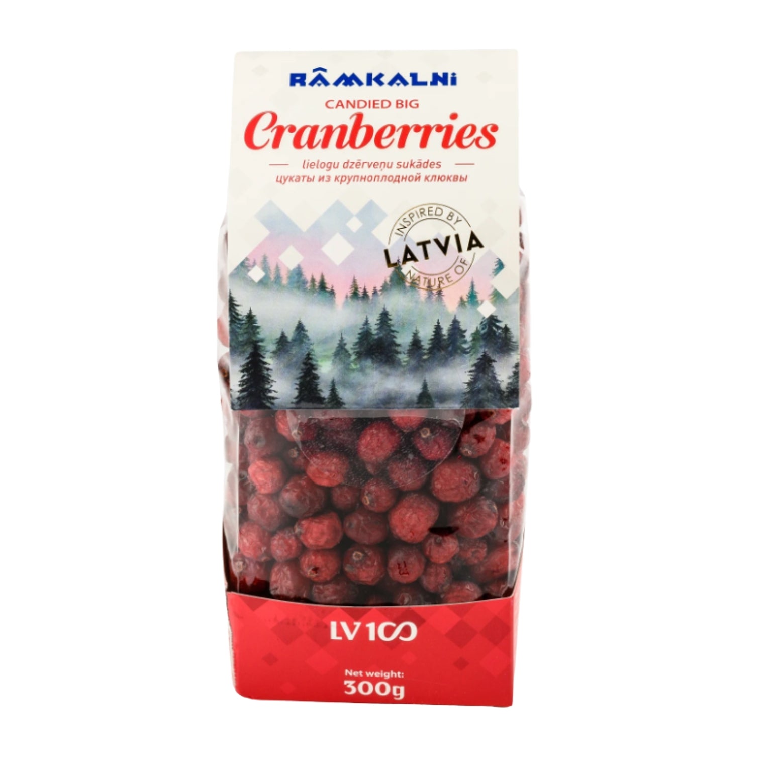 - Lielogu dzērveņu sukādes – gardas un viegli skābenas sukādes, kas gatavotas no sulīgām lielogu dzērvenēm. Šis našķis ir bagāts ar dabīgu garšu un lieliski piemērots gan ikdienai, gan svētku galdam. Ideāli piemērotas kā piedeva desertiem.