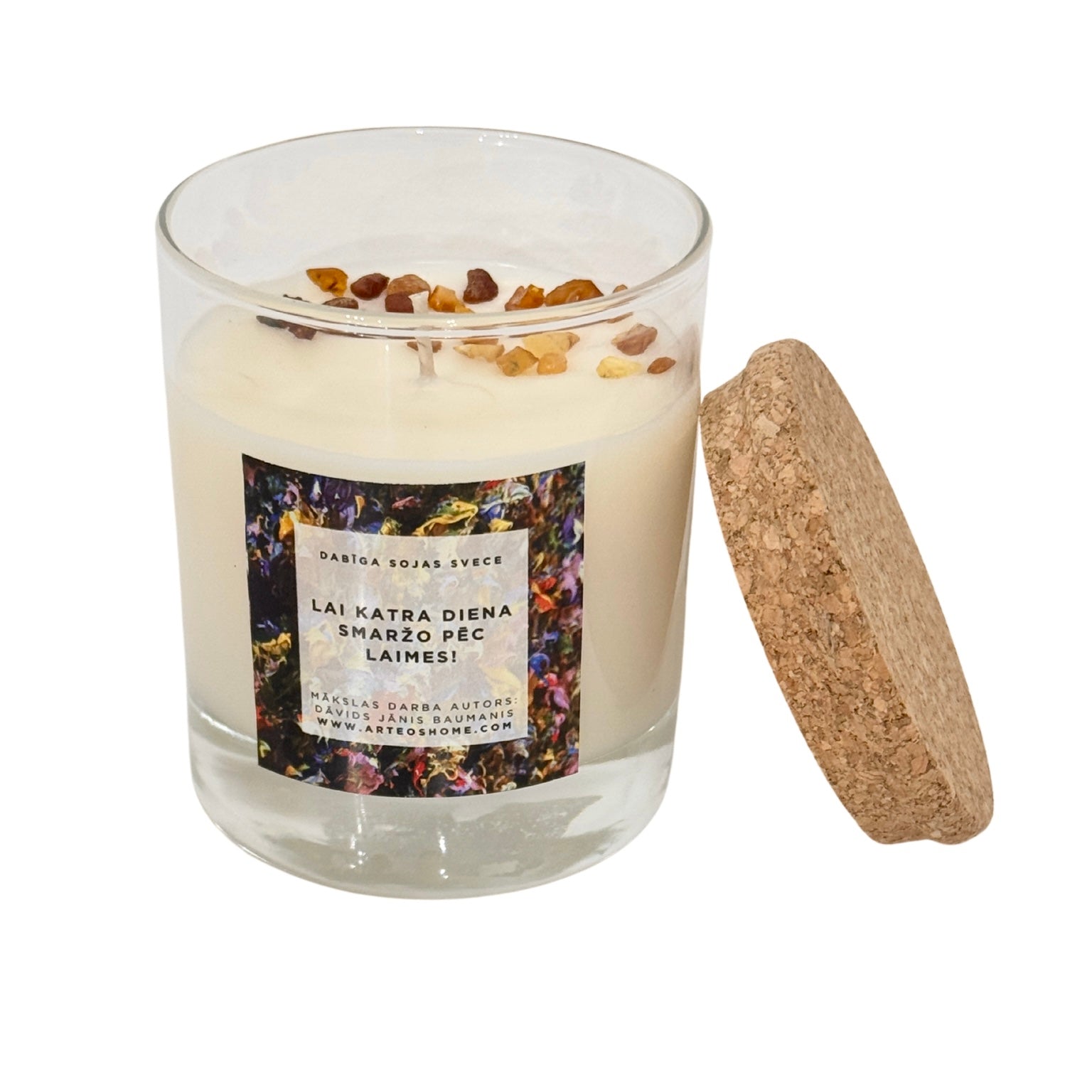 - Sojas vaska dabīgā svece ar stāstu: Lai katra diena smaržo pēc laimes!