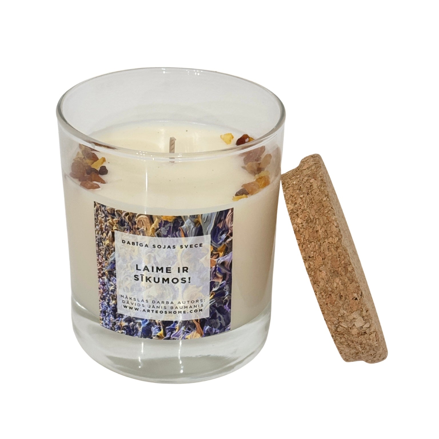 - Sojas vaska dabīgā svece ar stāstu: Laime ir sīkumos!