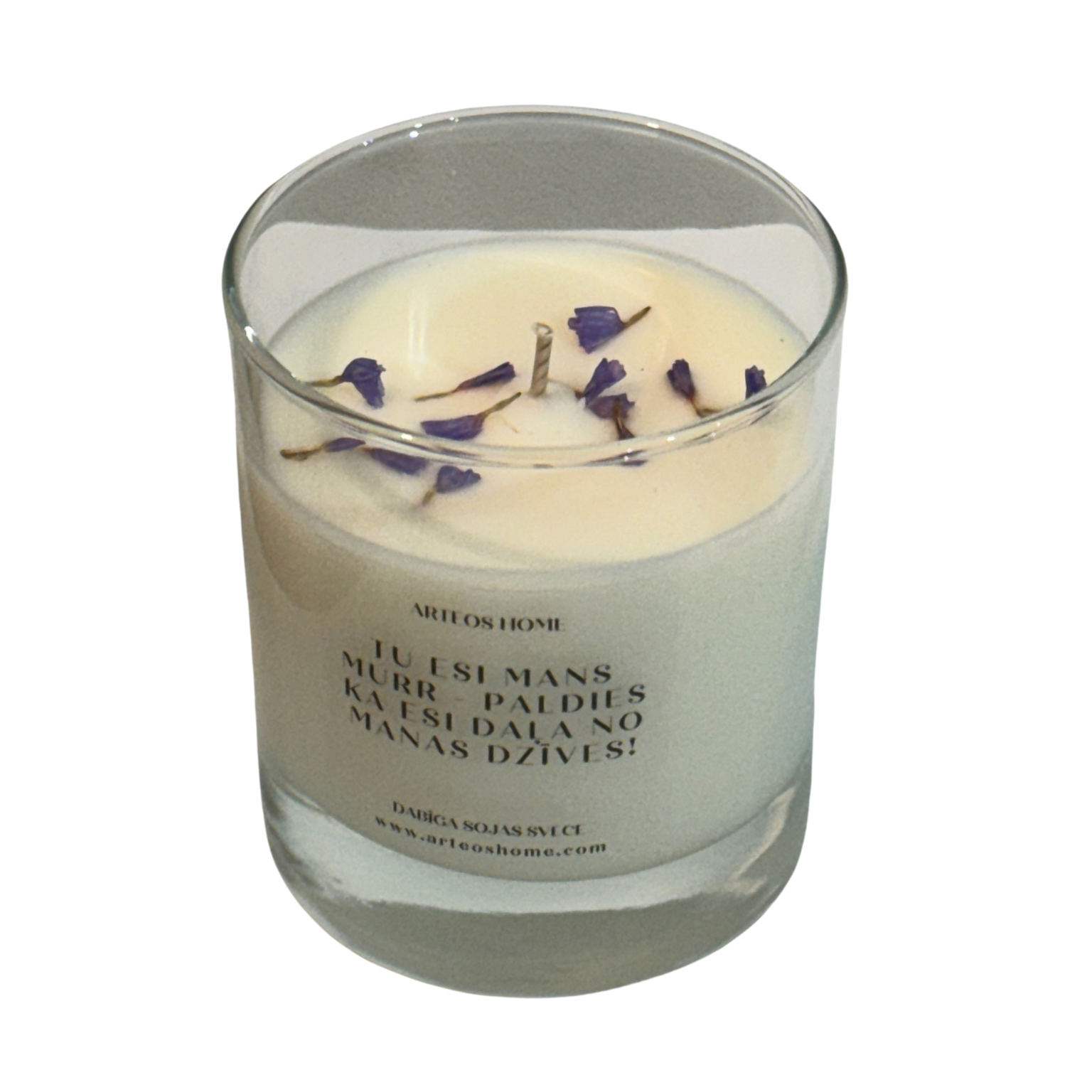 - Sojas vaska dabīgā svece ar stāstu: Tu esi mans Murr! Paldies, ka esi daļa no manas dzīves!