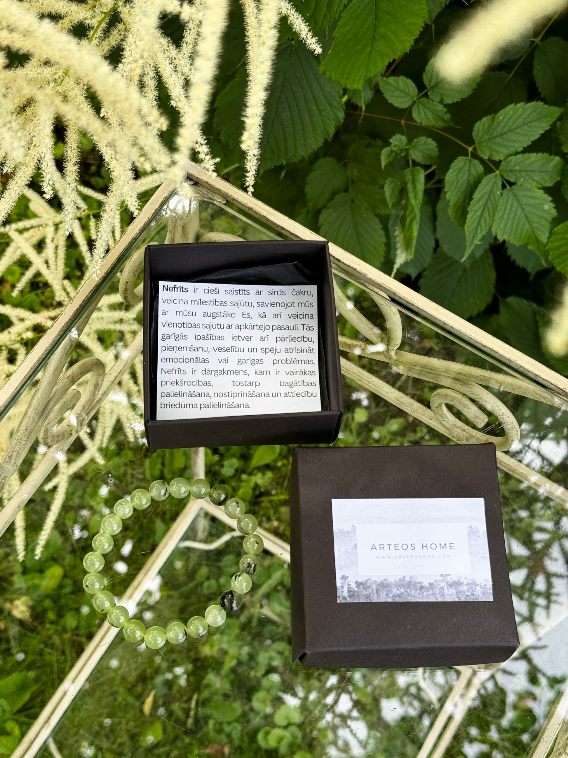 - Nefrīts ir cieši saistīts ar sirds čakru, veicina mīlestības sajūtu, savienojot mūs ar mūsu augstāko Es, kā arī veicina vienotības sajūtu ar apkārtējo pasauli. Tās garīgās īpašības ietver arī pārliecību, pieņemšanu, veselību un spēju atrisināt emocionālas vai garīgas problēmas. Nefrīts ir dārgakmens, kam ir vairākas priekšrocības, tostarp bagātības palielināšana, nostiprināšana un attiecību brieduma palielināšana.