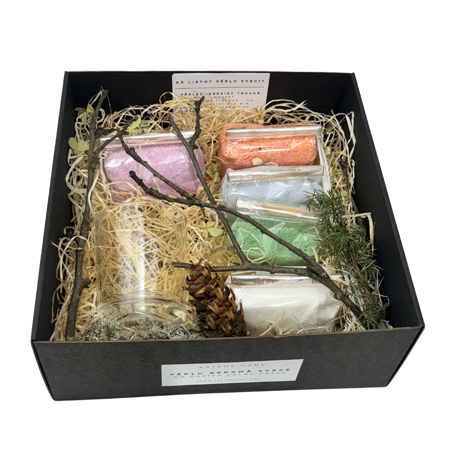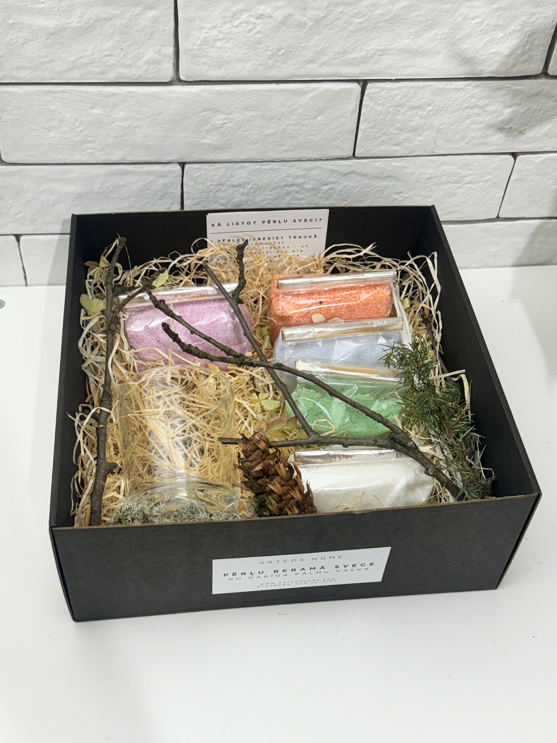 - Dāvanu komplekts ar pērļu beramajām svecēm