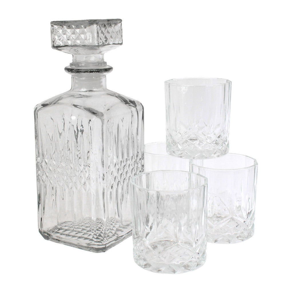 - Komplektā iekļauts: 4 glāzes un stikla karafe.